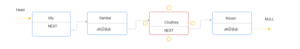 எனவே முனையை நீக்குவதற்கு முன், முந்தைய முனையிலிருந்து அடுத்த சுட்டிக்காட்டியைப் பெற வேண்டும், மேலும் இடையில் உள்ள முனையை நீக்குவதற்கு முன் முந்தைய முனையை புதிய அடுத்த முனையுடன் இணைக்க வேண்டும்.
