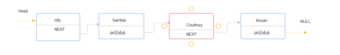 Idly -> Sambar -> Chuttney -> Dosai -> Kesari -> null